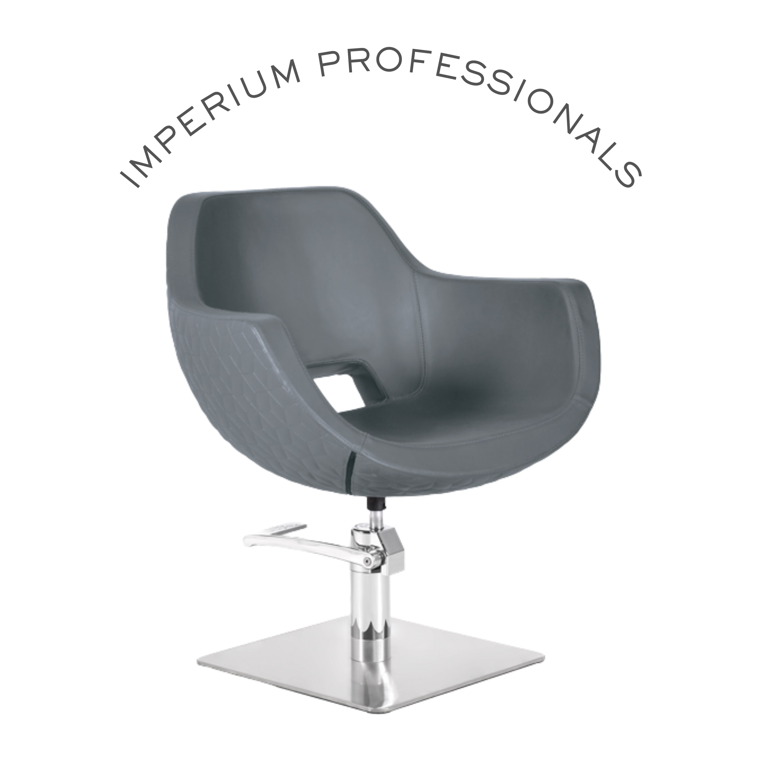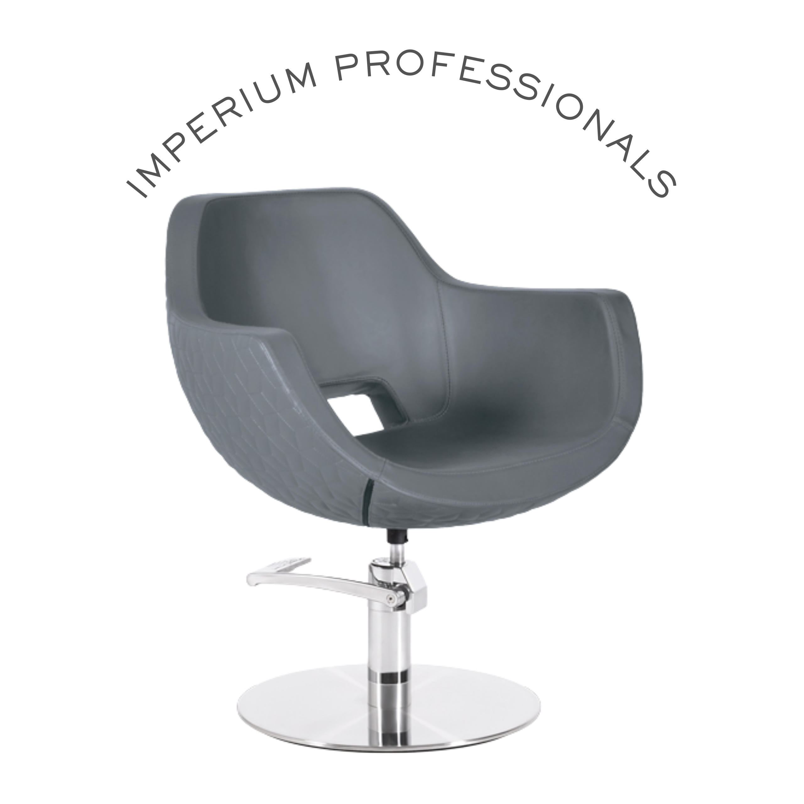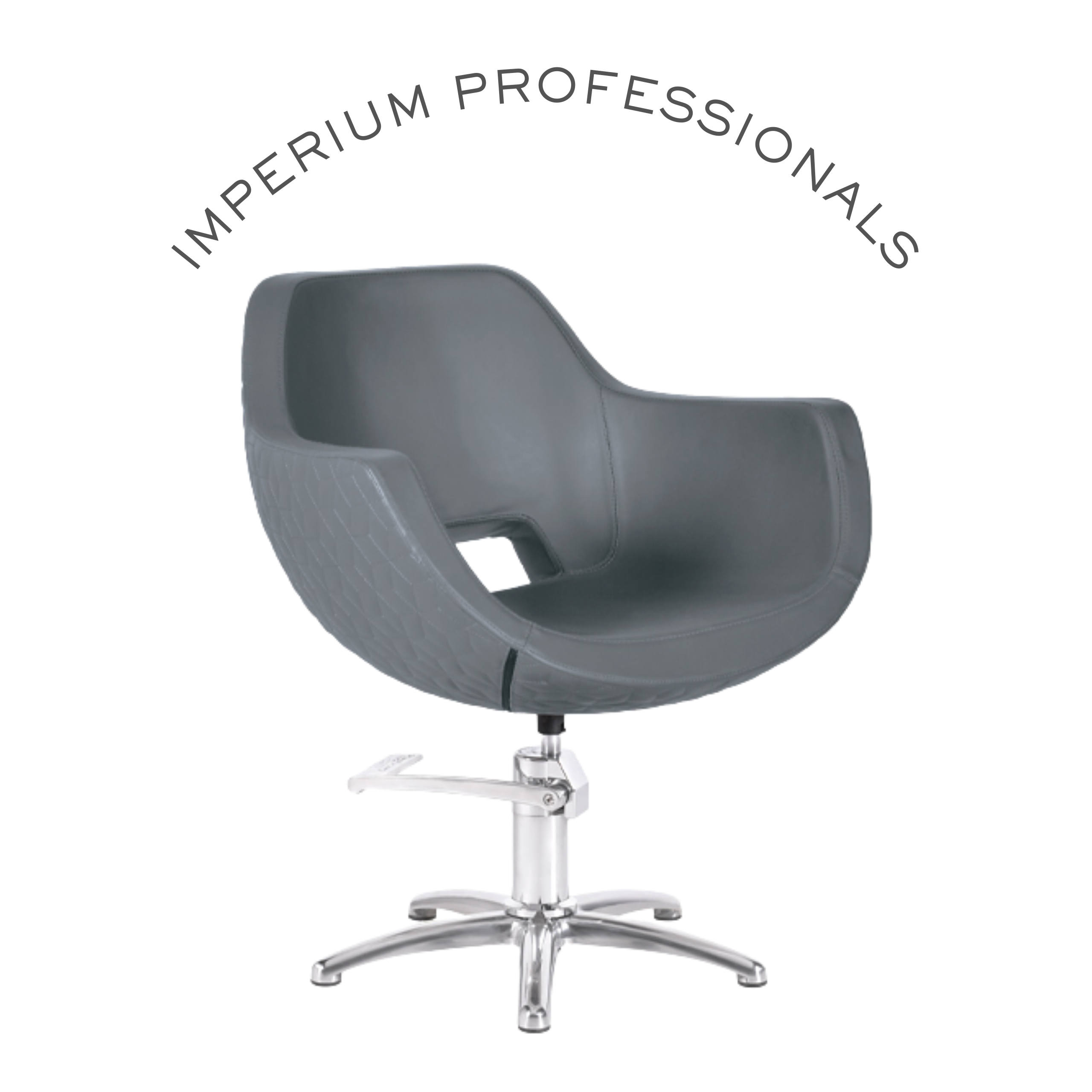 Scaun de coafor cu pompă hidraulică B06. Tapițerie în combinație opțională de culori negru, grafit moale și model grafit moale pattern. Poate fi retapițat.